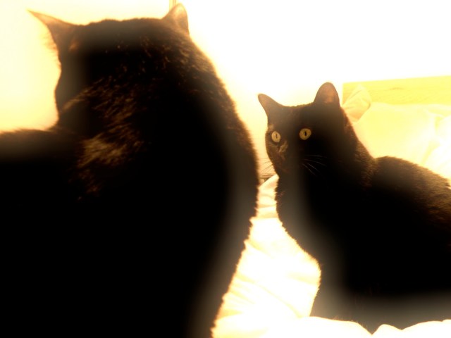 Nan and Gen are both black. So when they’re looking each other, I feel like they’re looking themselves in the mirror…. I always wonder if cats identify others with color or face?