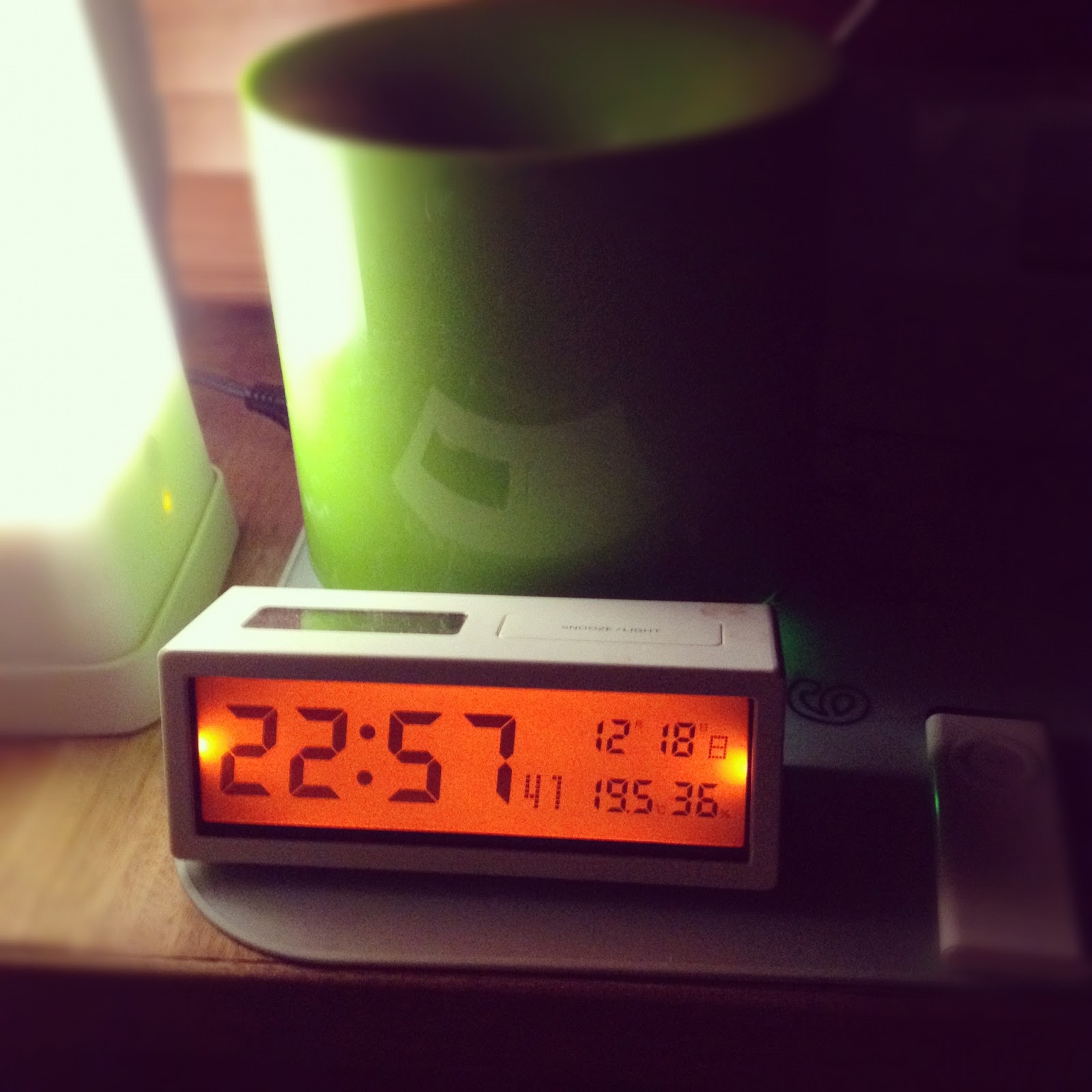 どうして、職場に持って行ったか、というと・・・実はアラーム音がスゴく小さくて(私には)。今は、別の無印の時計を使ってる。こっちは底が傾いてないので、ちょっと見づらい。だけど、なにせ大音量なので、アラームとしては満点。
