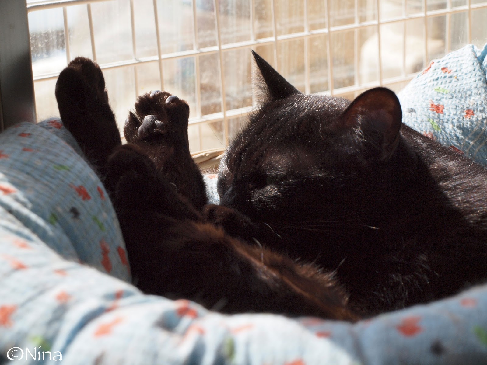 ゲンはひなたぼっこはしてみるけど、数十分でギブアップ。クロネコだからか、暑すぎるのは苦手みたい。めんどくさいネコだねー。