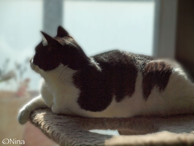 念のため、昼間、窓際に待機してみるけど、思ったほど日差しがなかったね。