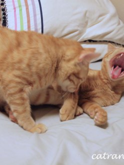 兄弟の去勢手術、無事終わりましたよ。まずは体重を計ってちょっとビックリ。ダイ:3.70kg、ヒロ:3.55kg。 増えているのは当然なのですが、どうみてもヒロの […]